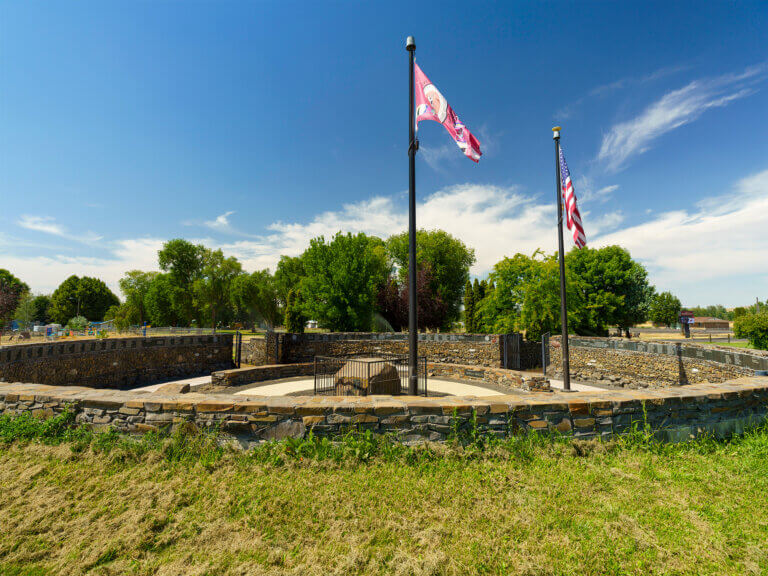 Indigenous veterans and their history are visible all over the Confederated Tribes of the Umatilla Indian Reservation. Outside the Nix-yá-wii Governance Center is the Nicht-Ya-Wi Warriors Memorial. This piece of public art includes a flagpole and lists of names of fallen soldiers from a number of conflicts.